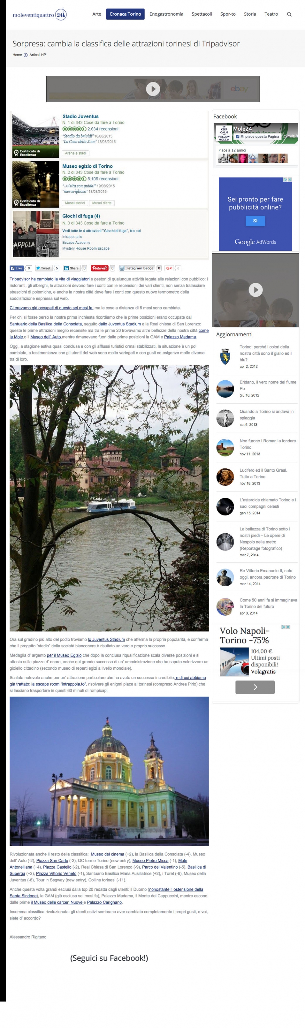 Mole 24 - Intrappola.to nella classifica delle attrazioni torinesi di Tripadvisor
