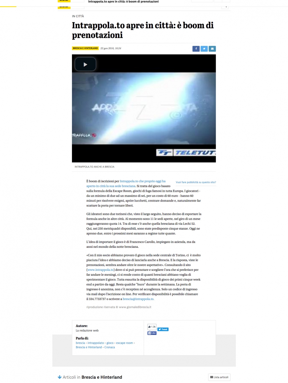 { "@context": "http://schema.org", "@type": "Organization", "url": "https://www.intrappola.to", "logo": "https://www.intrappola.to/assets/img/intrappolato_quadrato.jpq" , "contactPoint": [ { "@type": "ContactPoint", "telephone": "+393347733737", "contactType": "customer service" } ] }