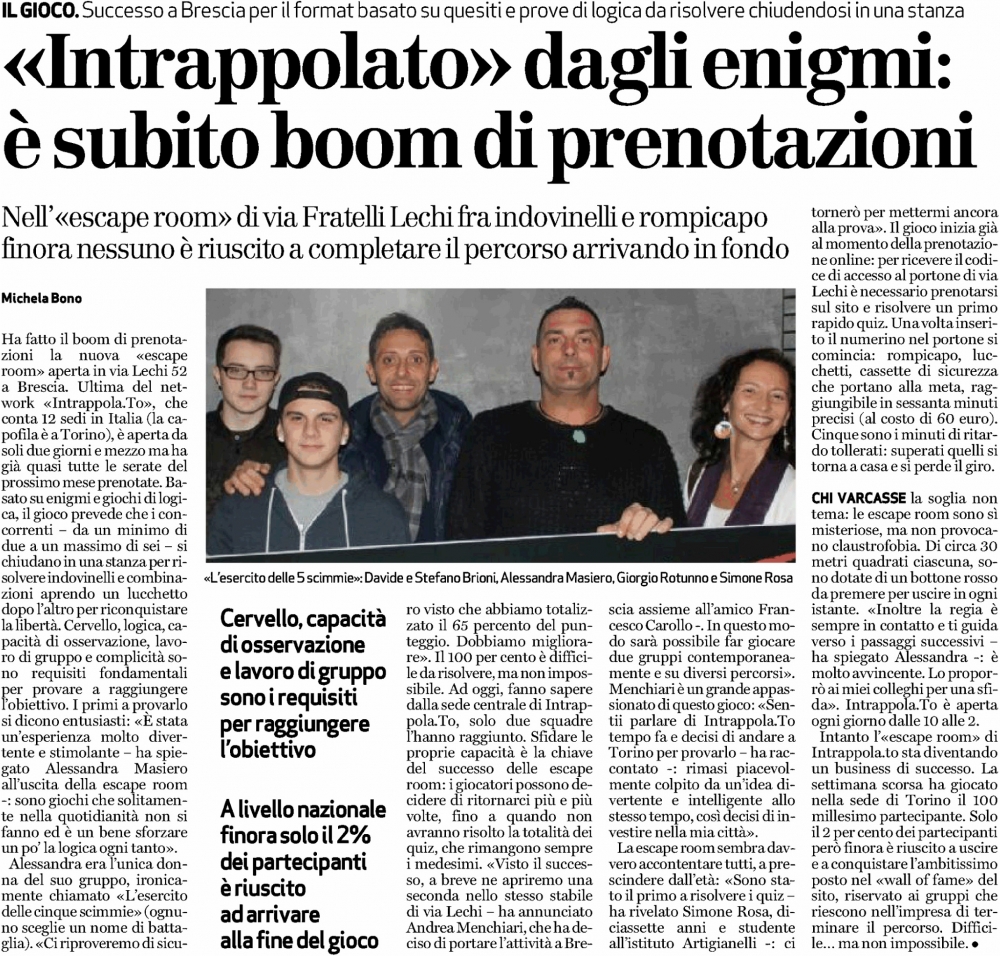 Brescia Oggi - Intrappolato dagli enigmi: è subito boom di prenotazioni