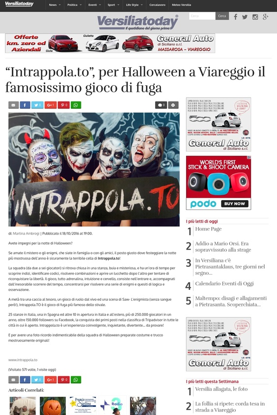 Versilia Today - Intrappola.to: per Halloween a Viareggio il famosissimo gioco di fuga