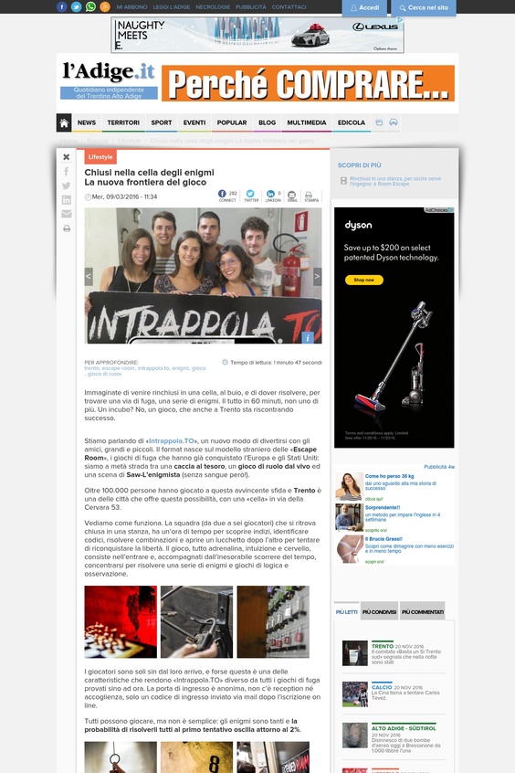 L'Adige.it - Intrappolato: chiusi nella cella degli enigmi, la nuova frontiera del gioco