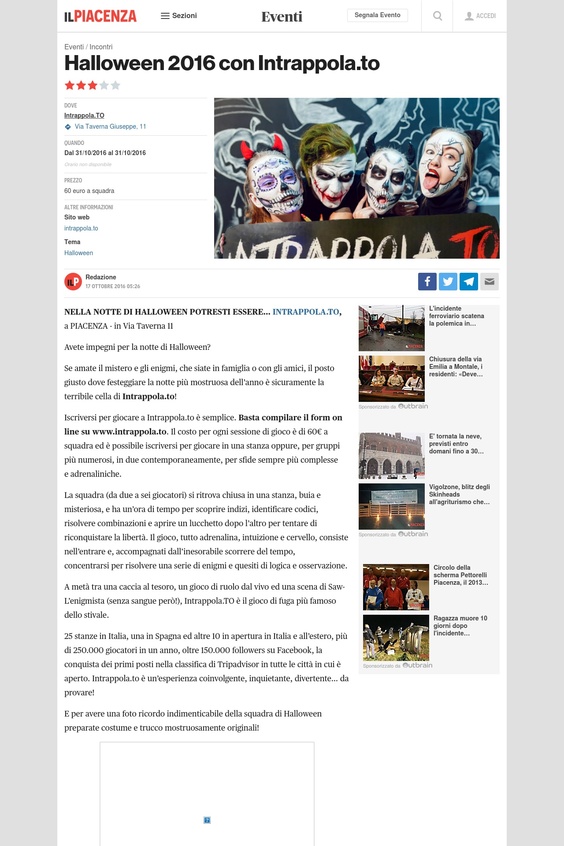Il Piacenza - Halloween 2016 con Intrappola.to