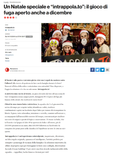 Foggia Today - Un Natale speciale e intrappola.to: il gioco di fuga aperto anche a dicembre