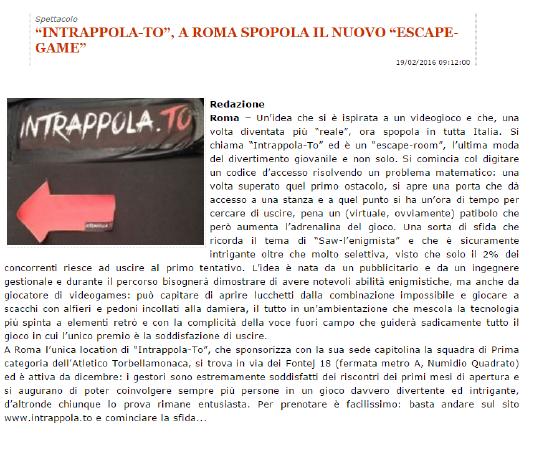 L'osservatore d'Italia - Intrappola.to: a Roma spopola il nuovo escape game