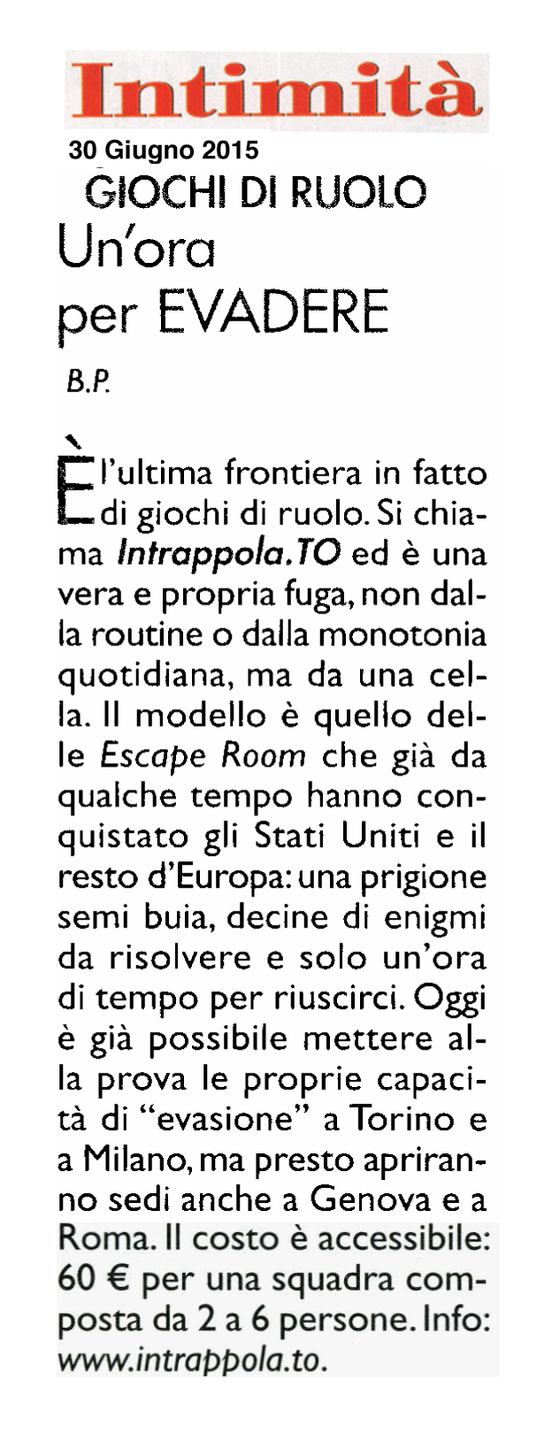 Intimità - Giochi di ruolo, un'ora per evadere: ecco Intrappola.toIntimità - Giochi di ruolo, un'ora per evadere: ecco Intrappola.to