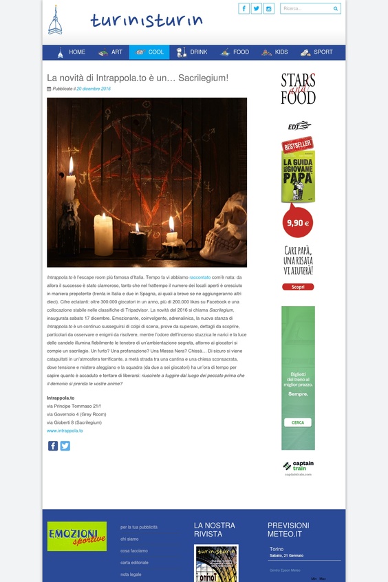Turinisturin.com - La novità di Intrappola.to è un... Sacrilegium!