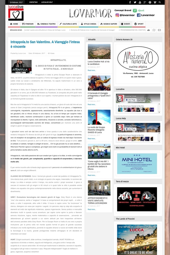 Lucca Live - Intrappola.to a San Valentino: a Viareggio l'intesa è vincente!