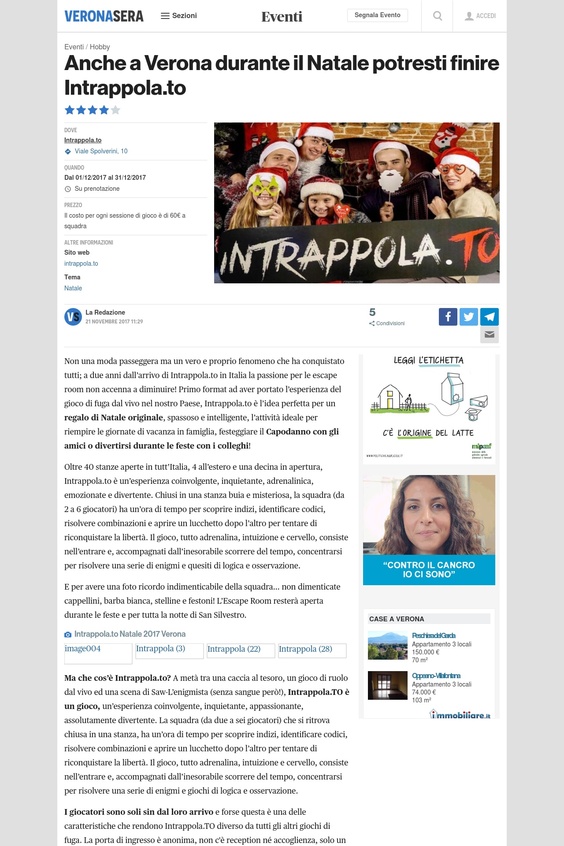 { "@context": "http://schema.org", "@type": "Organization", "url": "https://www.intrappola.to", "logo": "https://www.intrappola.to/assets/img/intrappolato_quadrato.jpq" , "contactPoint": [ { "@type": "ContactPoint", "telephone": "+393347733737", "contactType": "customer service" } ] }