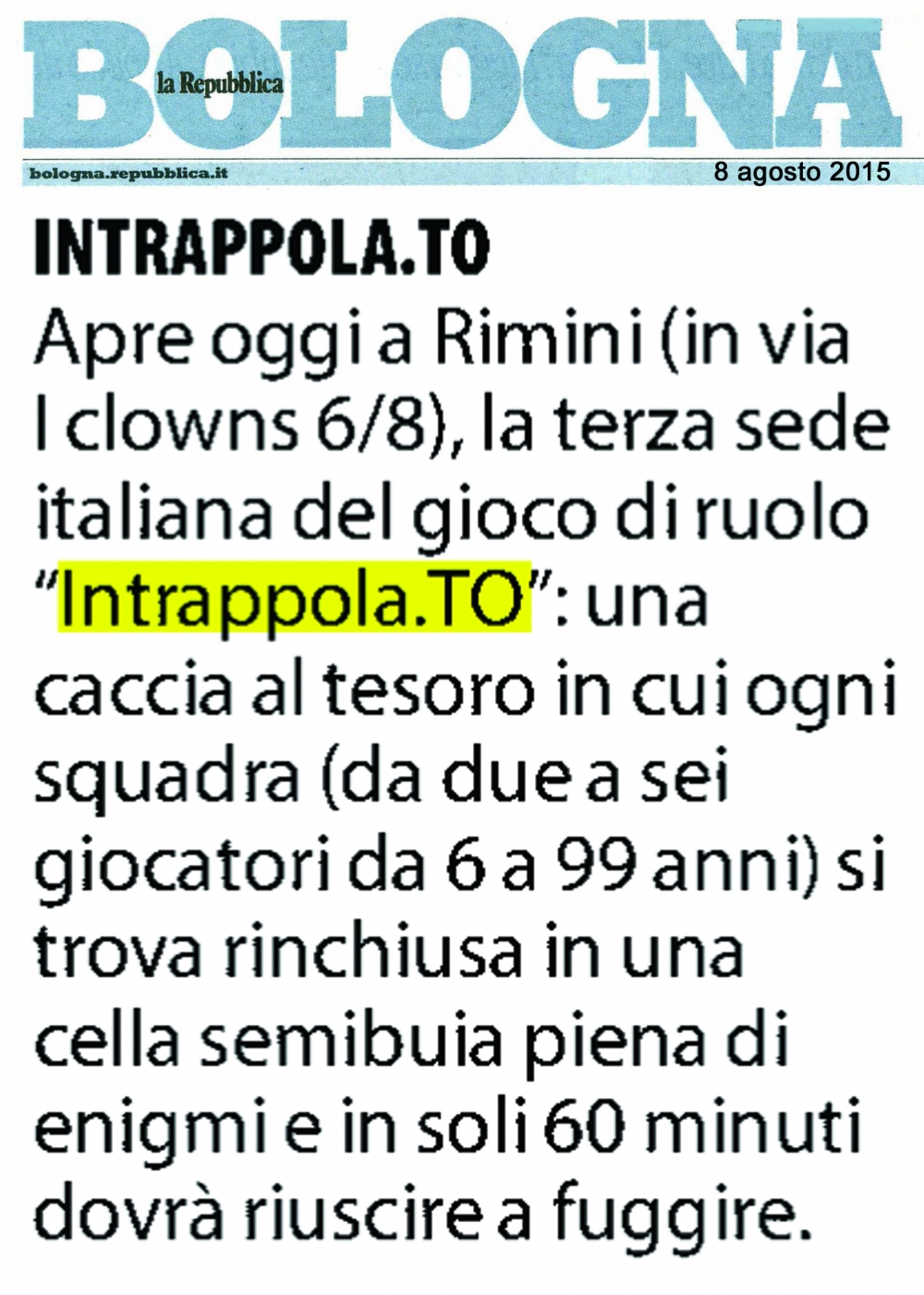 La Repubblica - Bologna - Apre oggi a Rimini la terza sede di Intrappola.to