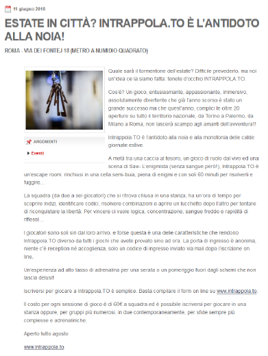 { "@context": "http://schema.org", "@type": "Organization", "url": "https://www.intrappola.to", "logo": "https://www.intrappola.to/assets/img/intrappolato_quadrato.jpq" , "contactPoint": [ { "@type": "ContactPoint", "telephone": "+393347733737", "contactType": "customer service" } ] }