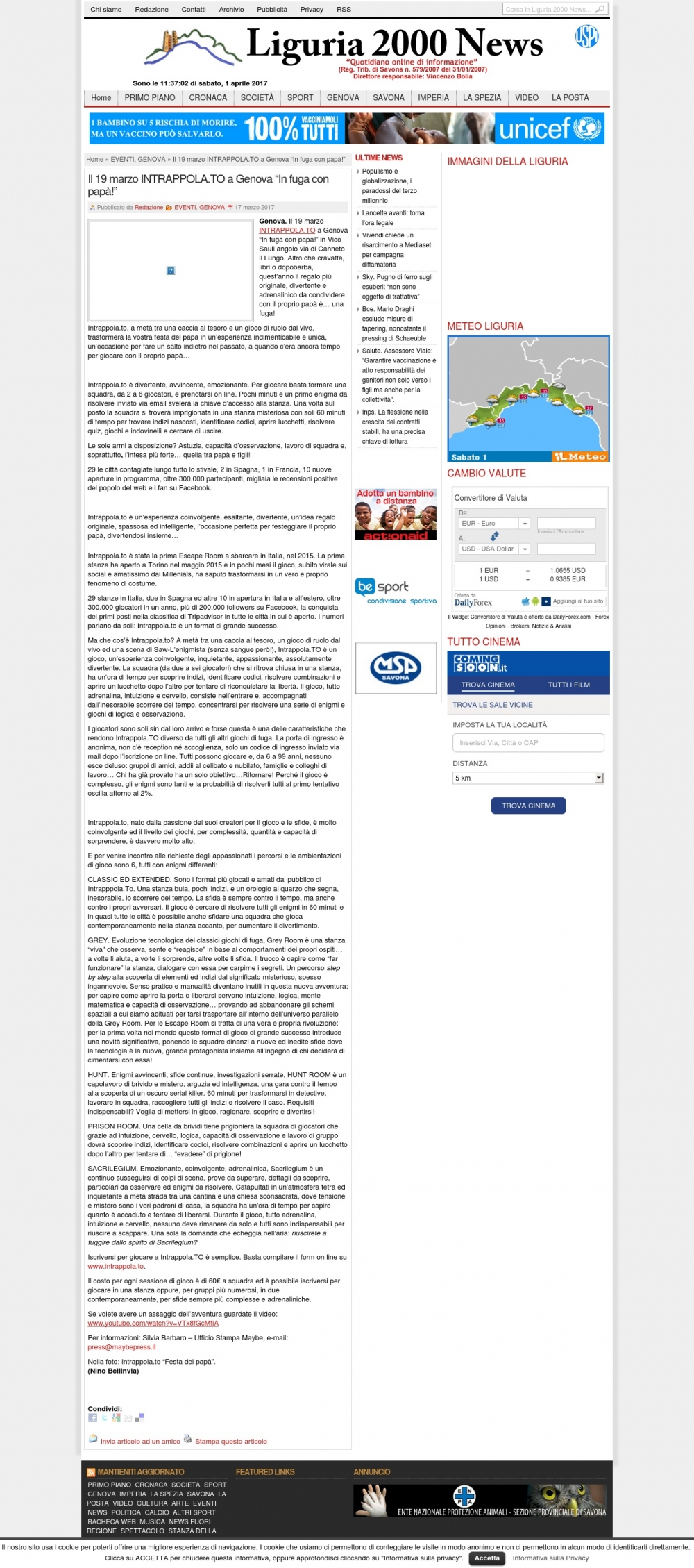 Liguria 2000 news - Il 19 marzo INTRAPPOLA.TO a Genova “In fuga con papà!”
